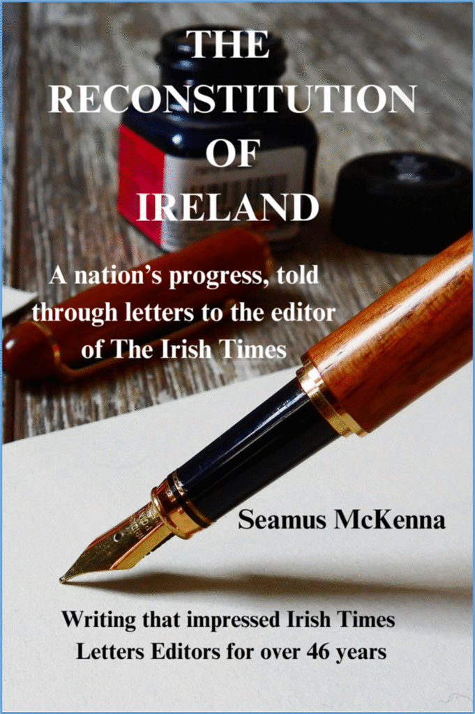 Seamus McKenna, an early member of Atheist Ireland, has had hundreds of short letters published in the Irish Times over nearly fifty years. He has now compiled them in a fascinating book, the Reconstitution of Ireland.