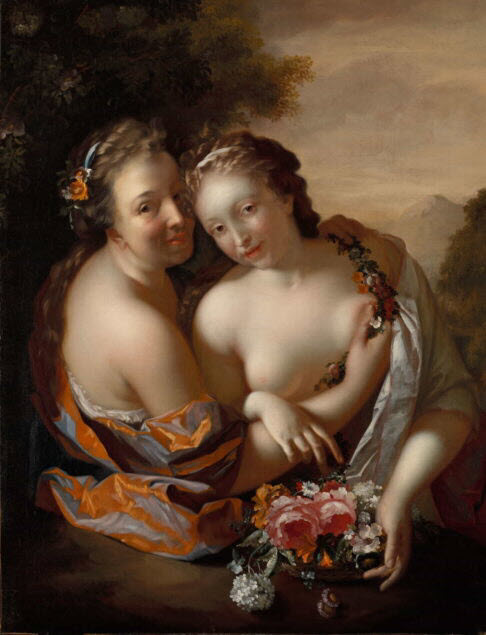 Workshop of Adriaen van der Werff (1659-1722), Two women embracing (allegory of spring?), ca. 1696