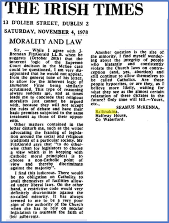 Mrs. McGee won her case on appeal to the Supreme Court. At one hearing her husband, Seamus, was asked by a lawyer if he would be happy seeing his wife using contraceptives. His answer caused a stir. He said he would prefer to have her taking contraceptives than to be in the position where he had to visit her grave very week.